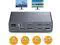 [KVM Switch Docking Station for Laptop&Desktop] The KVM Switch provides 1 USB-C (MST) input port for laptops,and 1 integrated HDMI, DisplayPort, and USB-A input ports for desktop PC. Allowing 2 computers share a 1 HDMI + 1 DP display,Seamless switching between work laptop and personal PC.