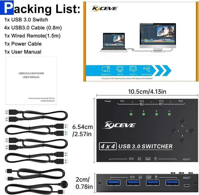 5Gbps Speed, USB 3.0 Data TransferThe 4 port USB 3.0 sharing switch supports USB 3.0 data transfer rates of up to 5Gb/s (10 times faster than USB 2.0 ). The mouse keyboard switch is backward compatible with USB 2.0 & USB 1.1 peripherals. Support wireless keyboard and mouse.