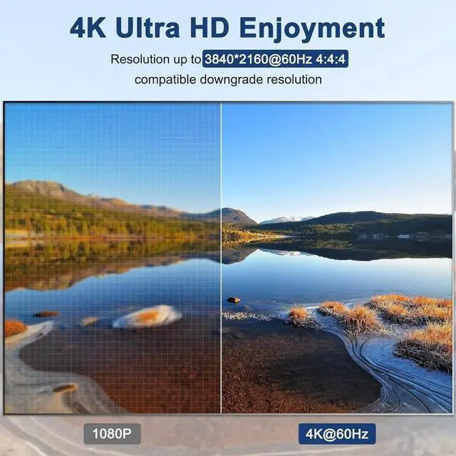 Ultra HD 4K@60Hz USB 3.0 Dual Monitor KVM switch HDMI support resolution 4K@60Hz, 2K@120Hz, @144Hz. 3 computers 2 monitors switch aslo support input terminal to connect 2 computers with different resolutions, e. g. one is 4K@60Hz, the other is 4K@30Hz, 1440P@60Hz or lower resolution.