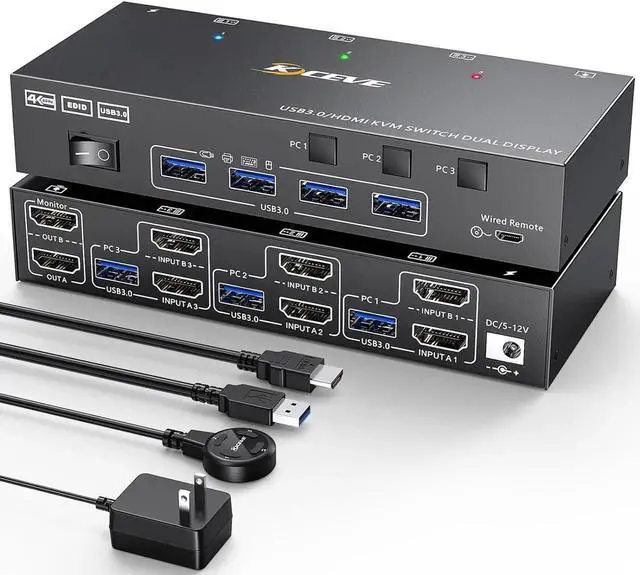 KVM Switches with 4 USB 3.0 PortDual monitor HDMI USB switch with 4 integrated USB 3.0 ports which can recognize keyboard, mouse, printer and other USB devices.