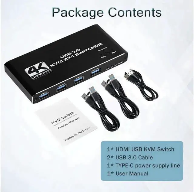 4. Equipped with 4 USB cables, to solve your troubles of buying USB cables, support 3 switching modes, button switching, remote control switching, keyboard switching.