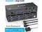 8K DisplayPort KVM Switch 3 PC 2 Monitors 8K@30Hz 4K@144Hz with DP 1.4 and 4 USB 3.0 ports, supports 3 computers Share 2 Monitor Keyboard Mouse Hard Drive Printer, supplied with 3 USB-A cables and a DC12V power adapter.