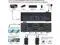 - 2 computers share 4 USB 3.0 devices and 2 monitors.