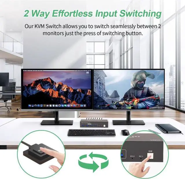 1.Display Delay During Switching: When switching between computers, the monitors may briefly go black for a few seconds--this is normal and expected.