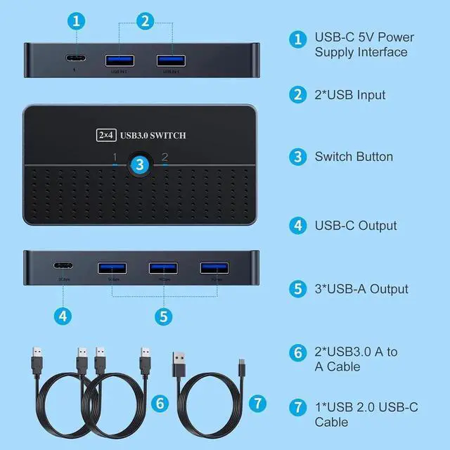 - Oversized Switch Button & Blue-green Light Design: makes this usb switch 3.0 very convenient and easy to use.