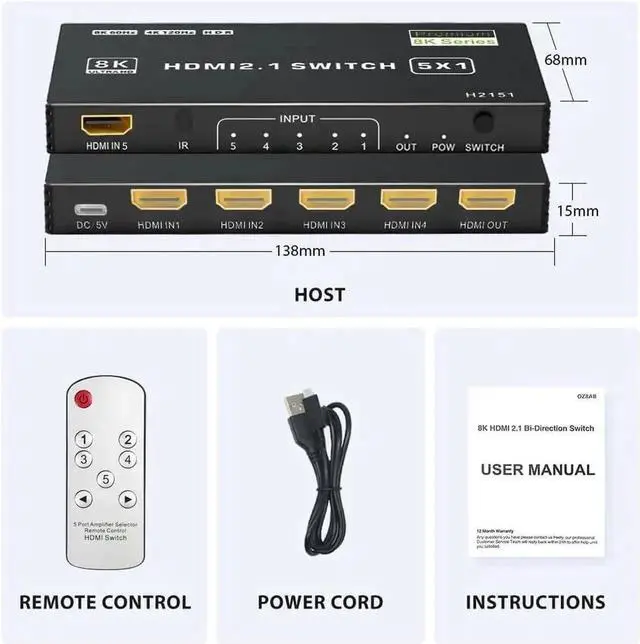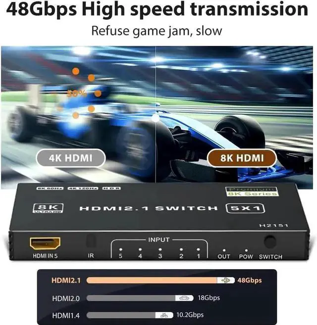 HDMI 2.1 Features: The HDMI 2.1 switch selector hub supports up to 8K@60Hz, HDCP 2.3 compliant and supports HDR10+, Dolby Vision, 3D, and up to 48Gbps video bandwidth. There is no signal or image loss