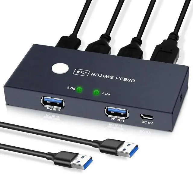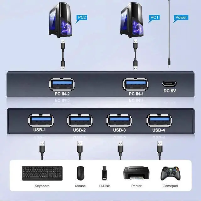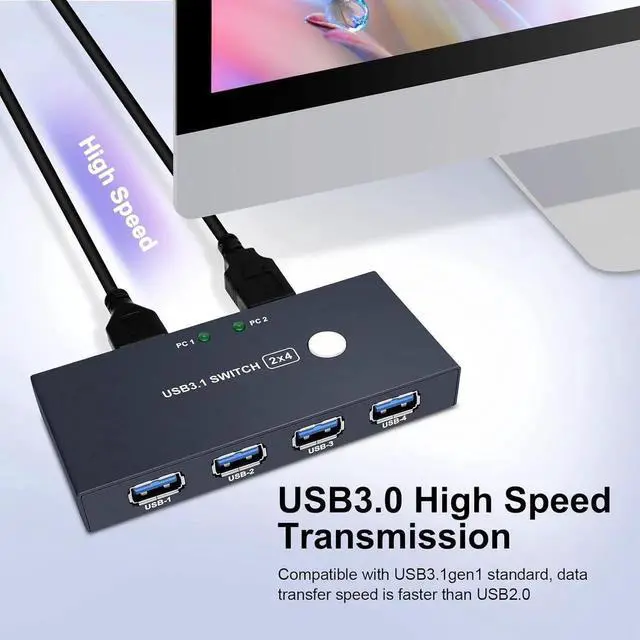 This USB 3.0 switch allows your 2 computer to share 4 USB 3.0 devices, which solved your trouble of plugging and unplugging USB devices back and forth, save your time and improve your office efficiency. This usb switcher is suitables with mouse, keyboard, printer, scanner, hard drive, flash drive and other USB devices.