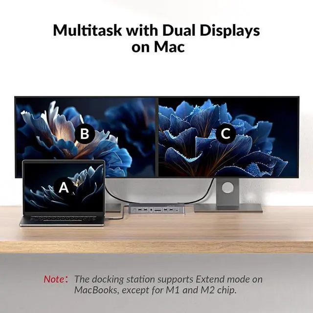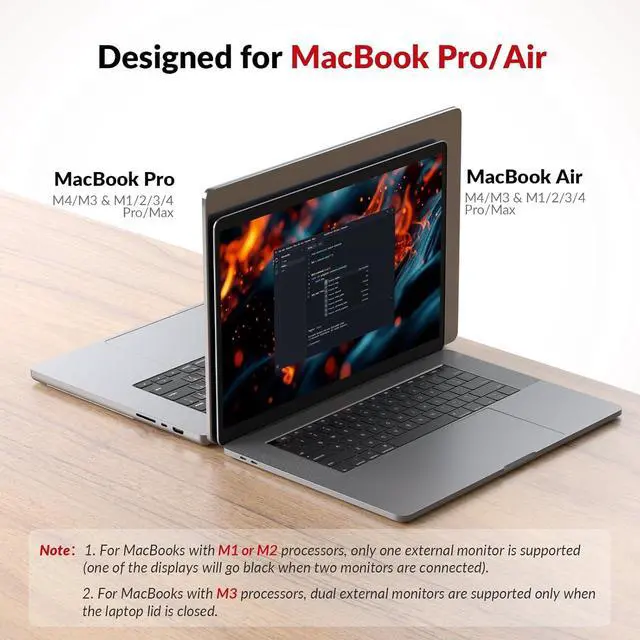 | Compatible Devices | supports dual extended displays on macOS with M1/M2/M3/M4 Pro, M1/M2/M3/M4 Max, and M3/M4 chips. |