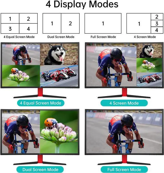 Not only it's a HDMI Multiviewer, but also it's a HDMI Switch. It allows you to watch 4 segmentation videos on a screen, or switch between 4 channels, or watch 2 videos of the 4 channels.