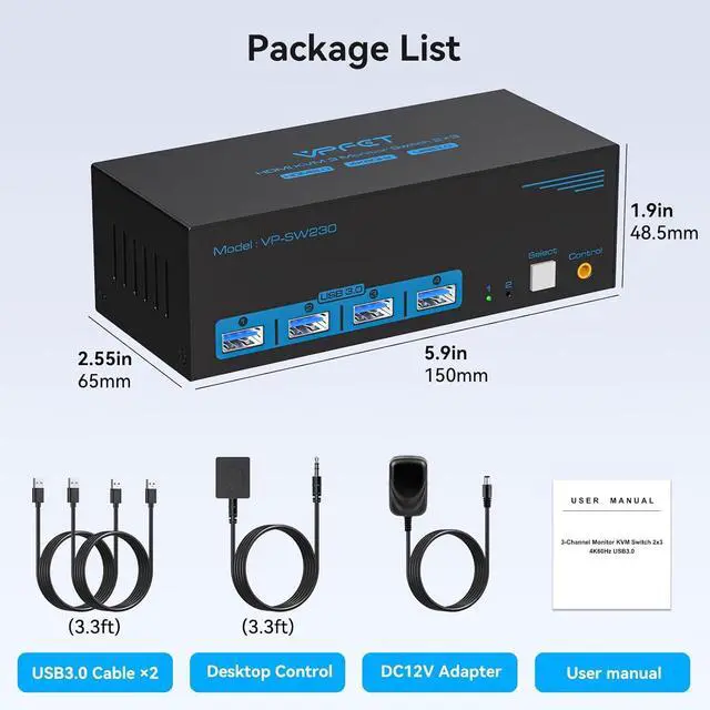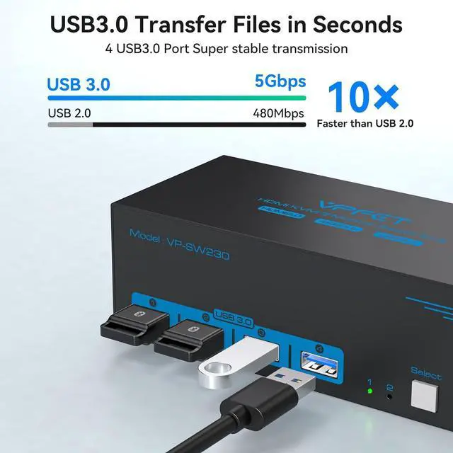USB 3.0 KVM Switch3 monitor KVM for 2 Computers with 4 USB 3.0 ports.