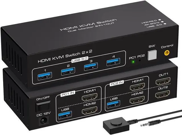 It is possible to control two computers and two monitors directly with one set of keyboard and mouse.Two monitors can support two modes:duplicate and extend.Supports resolutions up to 4K 60Hz.Equipped with four USB 3.0 ports, allowing you to connect scanners, hard drives, and other USB devices.Equipped with a 12V/1A power supply, ensuring stable work even when high-power devices are connected.Compatible with Windows/Vista/XP, Mac OS, Linux, and Unix, plug-and-play.