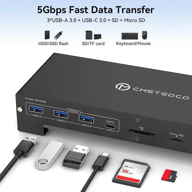 Laptop and Desktop KVM Switch:This KVM switch is suitable for 1 Thunderbolt 4 laptop and 1 desktop PC with 2 displayport ports + 1 HDMI port sharing 2 monitors with DP ports and 1 monitor with HDMI port as well as keyboard and mouse printer Flash Disk, SD card, Ethernet, etc. Note: The USB-C 3.0 port only supports data transmission, not video signal transmission
