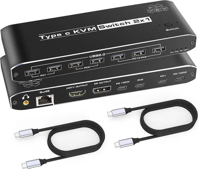 KVM SWITCH 5.0 out of 5 starsType C KVM Switch for 2 Laptops Share 1 Monitor, KVM Switch Docking Station with 7 USB-A Ports, 2 USB-C Charging 100W, RJ45 Port, Thunderbolt KVM Supports 4K@60Hz with HDMI and DP for Laptop