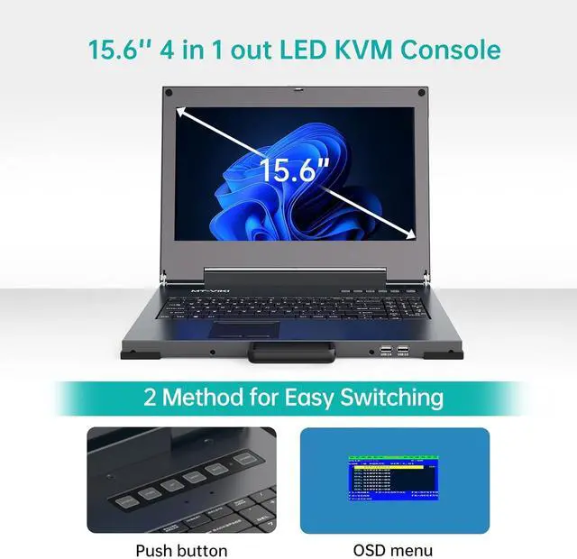 High-Resolution Display: The 15.6'' Portable LED KVM console support resolution up to 4K@60Hz in DP/HDMI input, HDCP 2.2, HDMI 2.0, 18Gbps, RGB 4:4:4YCbCr4:4:4. Display Brightness 350cd/m², Contrast ratio 1000