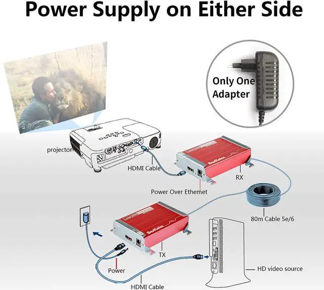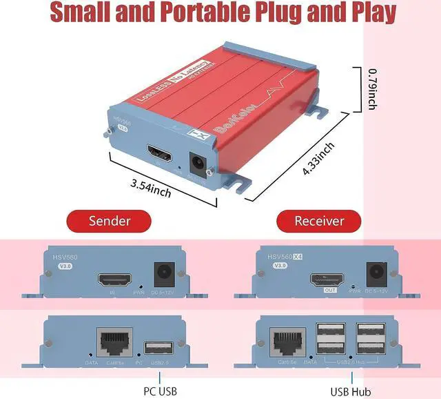 This HDMI KVM Extender has powerful PoC function, 12V power supply on either side, working on both sides, only one power adapter can supply power for TX and RX, HDMI through CAT cable extender, no video loss, no delay, usb extended delay, support various operating systems Such as Windows, Mac OS, Linux.