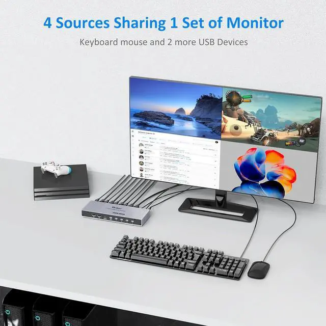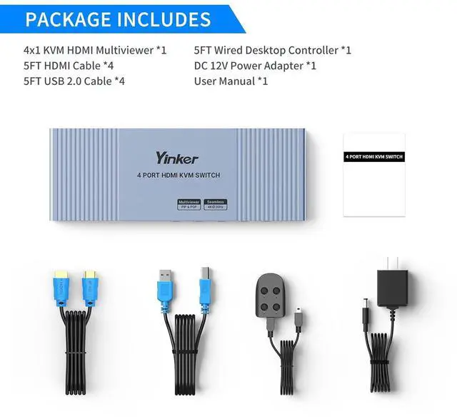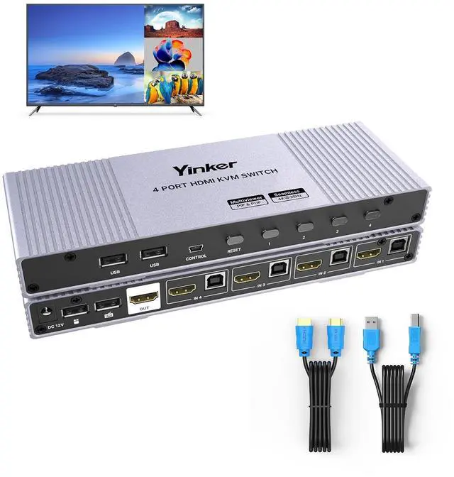 Watch Multi Video on 1 Screen Yinker HDMI Multiviewer Yinker 4 port HDMI Seamless Multiviewer Switch with lightweight and durable aluminum shell, lets 4 Computers share a set of operating devices Keyboard hotkeys switching display mode Compatible with multiviewer function, with 7 display modes which can be seamlessly switched