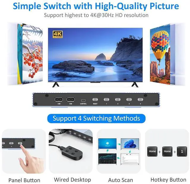 4 Switching Methods, Panel Button,Wired Desktop, Auto Scan and Hotkey Button.