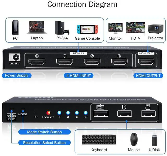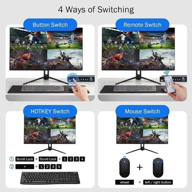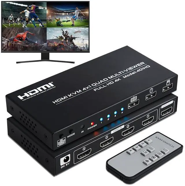 DGODRT 4K HDMI KVM Switch 4 in 1 out Quad Multiviewer supports 4 Computers share 1 Monitor, Keyboard, Mouse or other USB devices at the same time