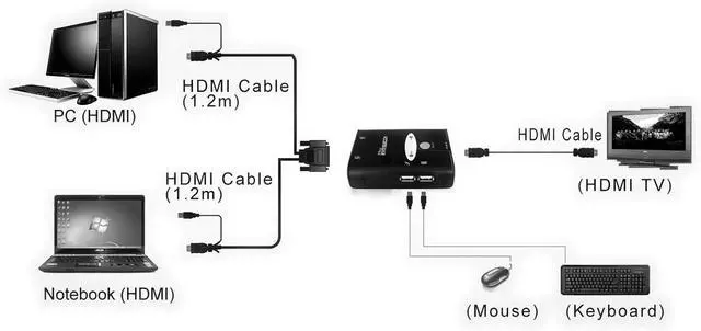Informed about the channel LED display Voltage supply via USB Connectors (CONNECTOR) PCs: 2 x HDMI, 1 x USB (keyboard, mouse) Max. Resolution (nominal): 1920 x 1200.