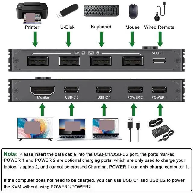 2 Port USB C KVM Switch,2 x USB C Inputs (1 for Each Device) + 1 x HDMI Output
