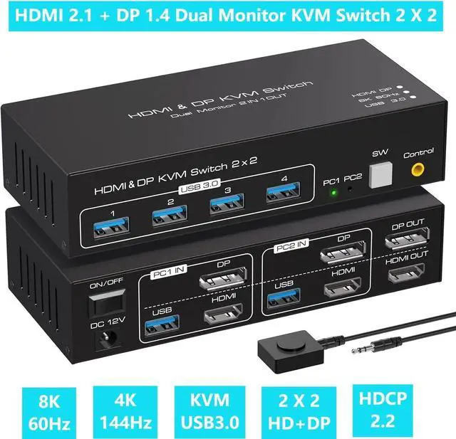 1 x HDMI DP KVM USB Switch 2x2
