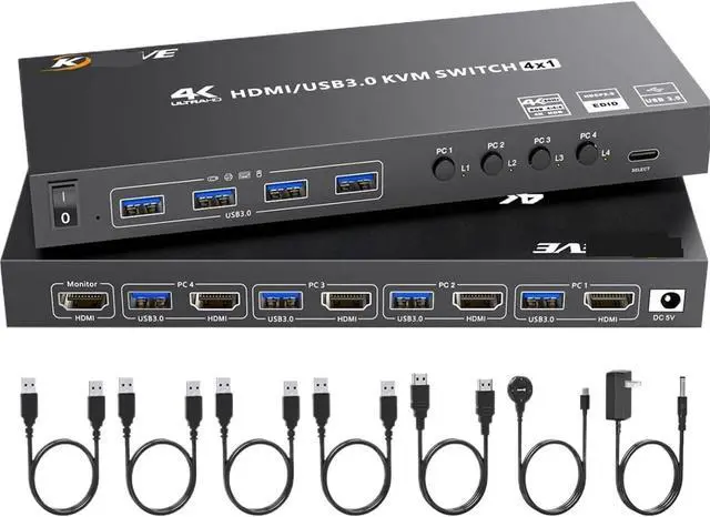 Style : KVM Switch HDMI with 4 USB 3.0 Ports