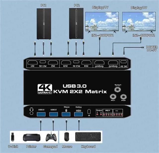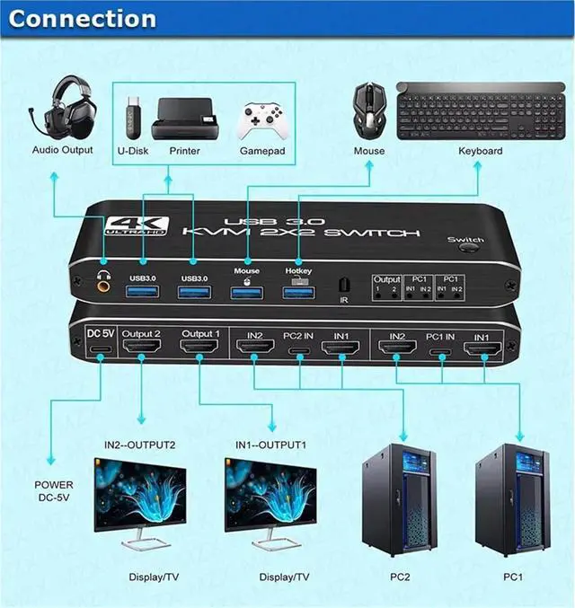 Model Number : KVM2-12 KVM Switch 2 HDMI-compatible USB Hub Docking Station Selector