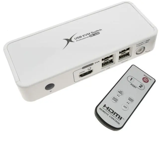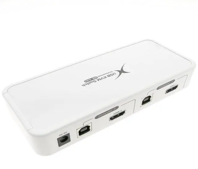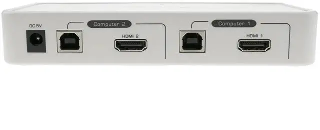 KVM switch (keyboard, mouse, audio digital video HDMI) 2 ports compact design. Switching is done with a single button or a combination of special keys. For connecting the computers, it has 2 sets of HDMI and USB ports (each PC has 1 x HDMI female to carry audio and digital video and 1 x USB B female for keyboard and mouse). 2 HDMI M/M cables are included. For the cone. The control console is equipped with HDMI and USB ports (1 x HDMI socket + 2 x USB-A socket). Includes 2 x USB Type A Female for USB 2.0 devices. Supported resolutions of 480i, 576i, 480p, 576p, 720p, 1080i, 1080p and 1920x1200 (DVI-D). It is powered by the USB port of any connected and active computer. Multiplatform (PC, Mac, iMac, etc.) Compatible with HDMI, HDCP and DVI. Bandwidth up to 165MHz (1.5Gbps) Supports transmission distances d up to 30 m (15 m IN and 15 m OUT). Size of 153 x 65 x 26 mm.