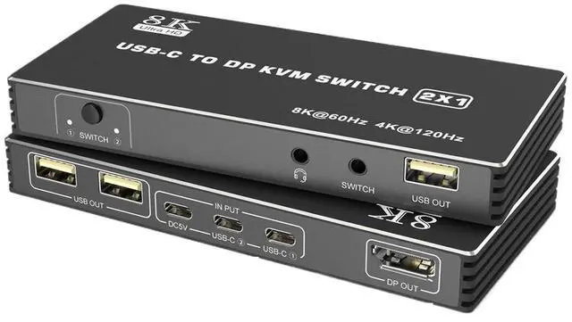 Ennovor USB C KVM Switch 8K@60Hz 4K@120Hz, 2 Port Type C KVM Switch for 2 Computers Share 1 DisplayPort Monitor,2 USB-C Cables Included