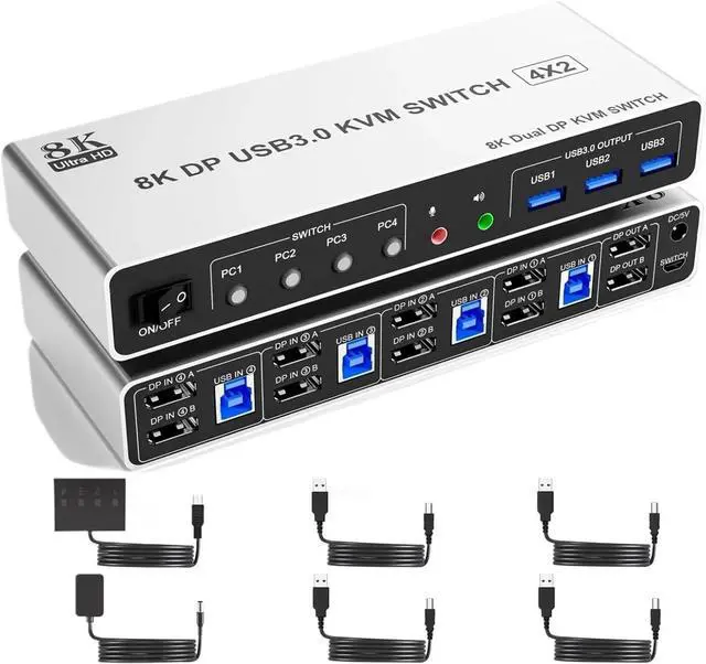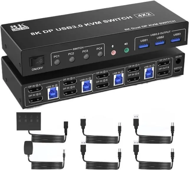 1x USB 3.0 DisplayPort KVM Switch 8K,