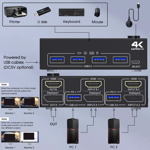Type 5 : kvm switch hdmi dual monitor