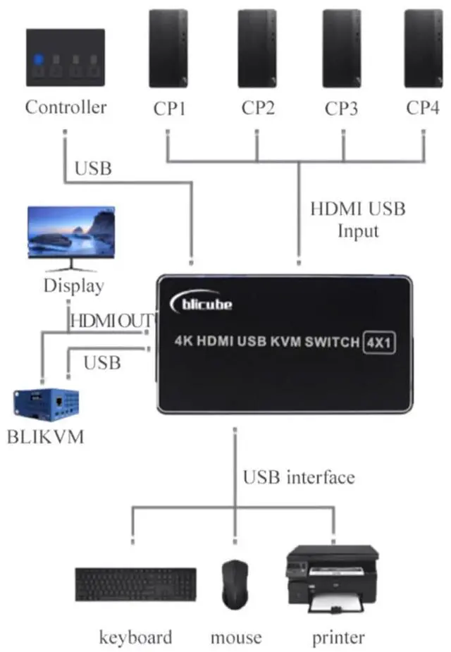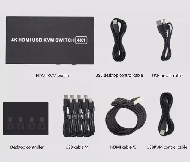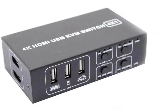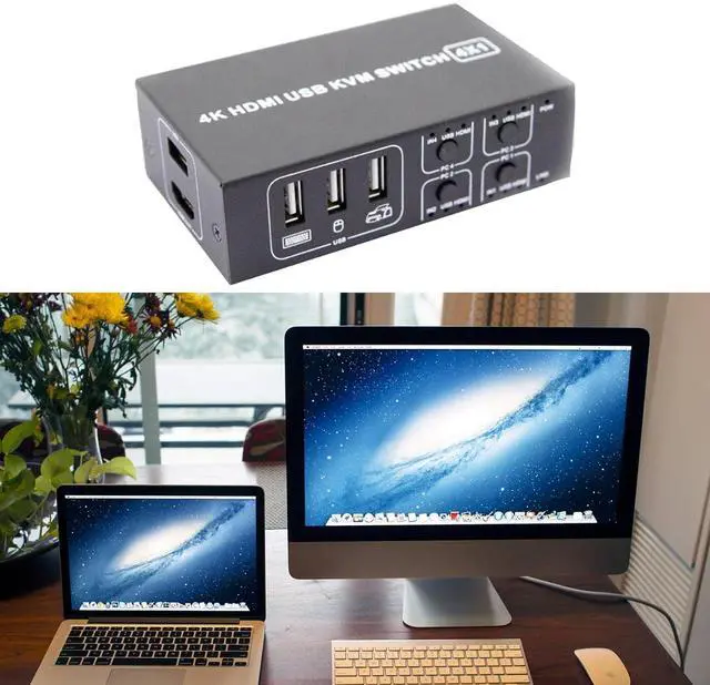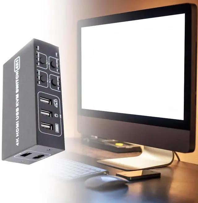 HDMIcompatible Switches KVM Shared Switcher Box 4 Port Converter 4 IN 1 Out USB Laptop Mouse Keyboard Display KVM Switches Box 4 In 1Out 4 Input Switcher Box Delivering Clear and Stable Video andAudio Transmission 3USB PortFeatures:Experience seamlessswitching between four input sources with the (1 set) KVM Switcher Four in Channel Converter. Effortlessly control your sources with a simple button or remote, eliminating the need for complicated setups.Enjoy high video andAudio transmission with this product, ensuring clear and stable visualsand sound for an enhanced viewing and auditory experience.Designed for home entertainment enthusiasts, this KVM switcher is perfect for those who want to easily switcher between multiple devices without the hassle of constantly connecting and disconnectingcables.Whether you're gaming, watching movies, or working on multiple projects, this KVM switcher provides a convenient solution for managing different input sources. Say goodbye totangled cablesand hello to a clutter free workspacesElevates your home theater experience with the (1 set) KVM Switcher Four in Channel Converter. Immerse yourself in stunningvisuals, all while effortlessly switching between your favorite devices. Specifications:ItemHDMIcompatible KVM SwitcherSizeAs PicturesSupport: 4 in 1 outHDMIcompatibleHDMIcompatible4KConnection: USB2.0x3Package Includes:1Set HDMIcompatible KVM SwitcherNote:Due to the problems of lighting effects and angles, there will be certain tolerances in the product, please understand. Please allow 1cm errors due to manual measurement.