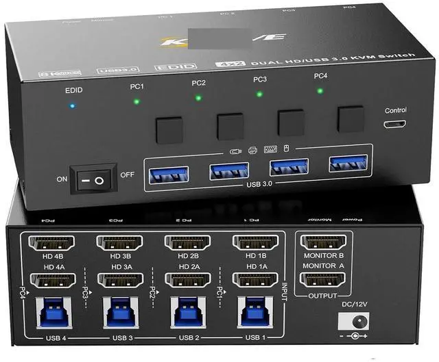 Ennovor 8K@60Hz KVM Switch 2 Monitors 4 Computers HDMI,USB 3.0 KVM Switcher Box with Emulator for 4 Computers Share Keyboard(with AU Plug)