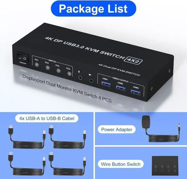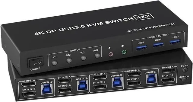 1x USB 3.0 DisplayPort Dual Monitor KVM Switch,