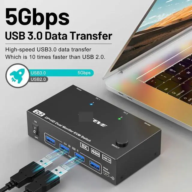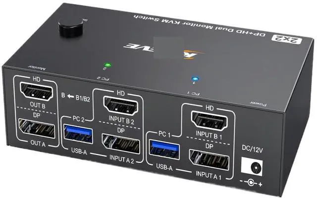 Ennovor 4K@144Hz KVM Switch 2 Monitors 2 Computers 8K@60Hz,HDMI +Displayport Dual Monitor with 4 USB 3.0 Port for Keyboard Mouse Printer(EU Power Adapter)