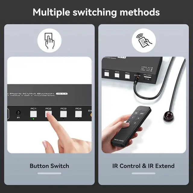 Ennovor 3 KVM Switches 1 Monitors 4 Computers 4K@144Hz for 4 PC Share 1 Monitor and Keyboard Mouse(UK Plug)