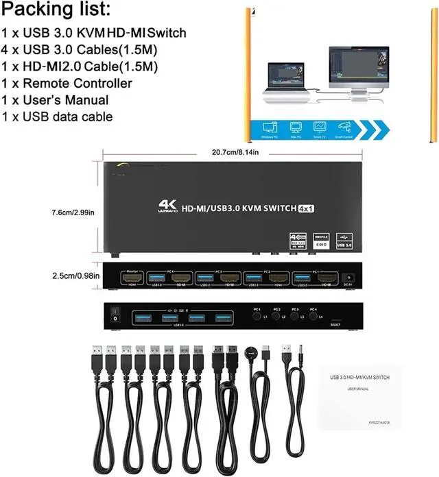 1*USB3.0/HDMI-compatible KVM Switcher