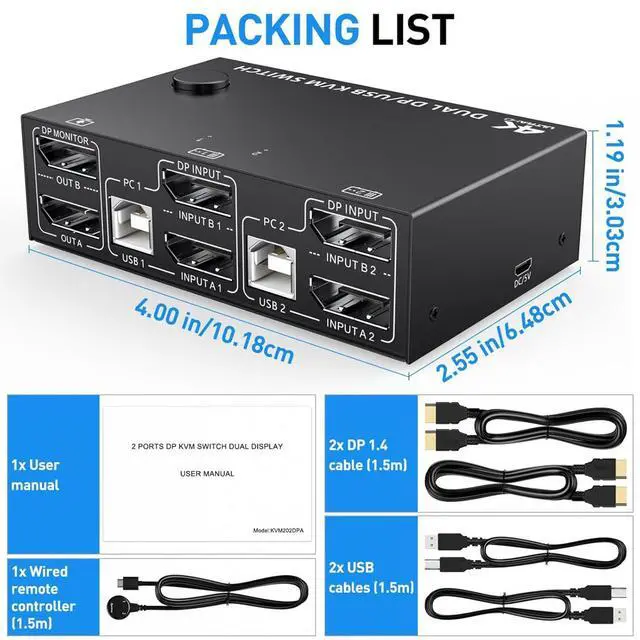 Item Type: DisplayPort KVM Switch Dual Monitor