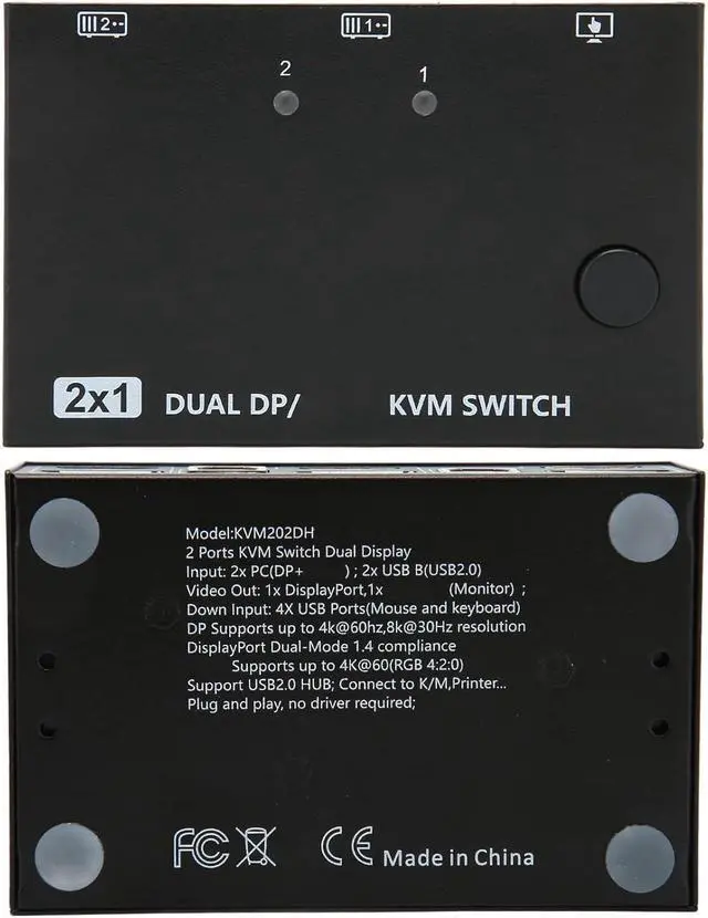 3. Supported Resolutions: The USB KVM switch supports high resolution 4K 60Hz, 1440P 165Hz, 144Hz, 120Hz, 60Hz, 1080P 165Hz, 144Hz, 120Hz, 60Hz. 60Hz resolution.