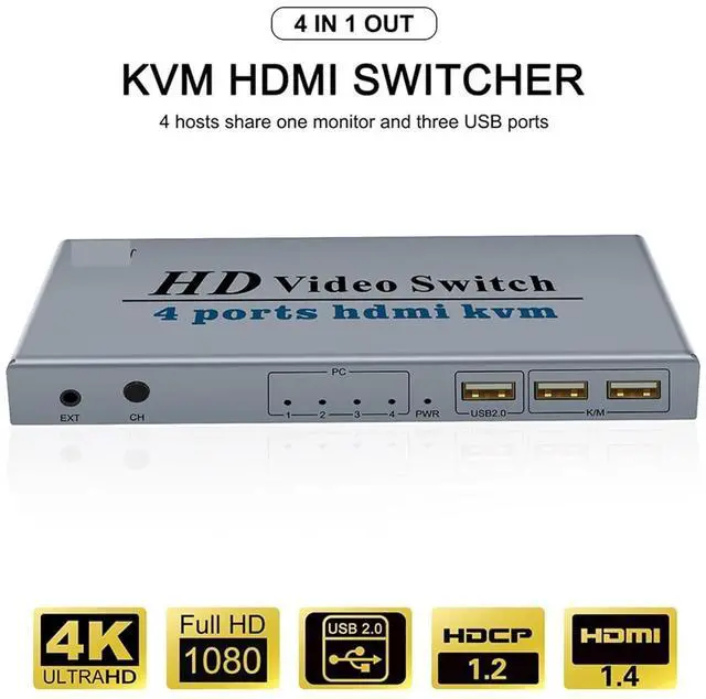 USB KVM Switch HDMI 4K USB KVM HDMI Switcher 4 in 1 Out with 3 USB Ports out for Mouse Keyboard U-disk Printer for Win7/8/10 MA*C