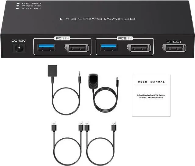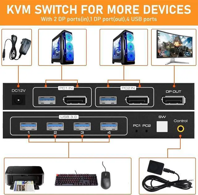 Support front panel buttons and External switch button to control KVM to switch inputs.