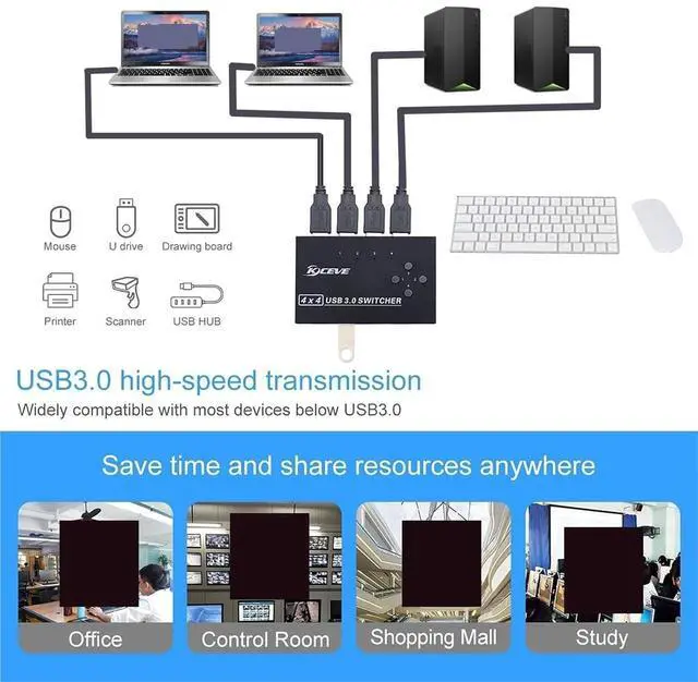 Function : 4 Computer hosts share printer Mouse Keyboard U-flash etc