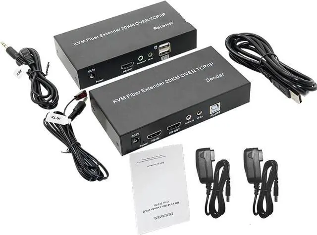 Ennovor 2023 20-60kHz 20Km HDMI KVM Fiber Extender 1080P@60Hz IP Ethernet Direct 1 to 1 Extender Switch Splitter for Mouse Keyboard