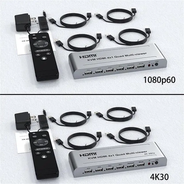 1. KVM HDMI 4x1 quad multi-viewer 1PCS