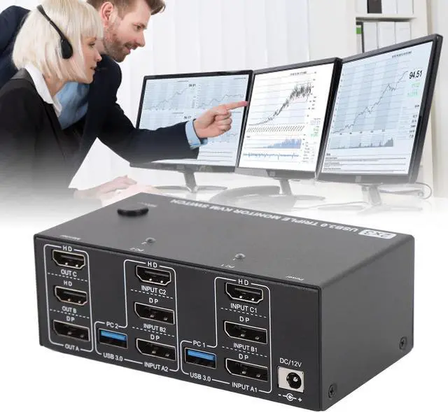 [Control multiple screens efficiently] Change without problems between 3 screens using a keyboard and mouse, sharing USB devices for greater labor productivity.