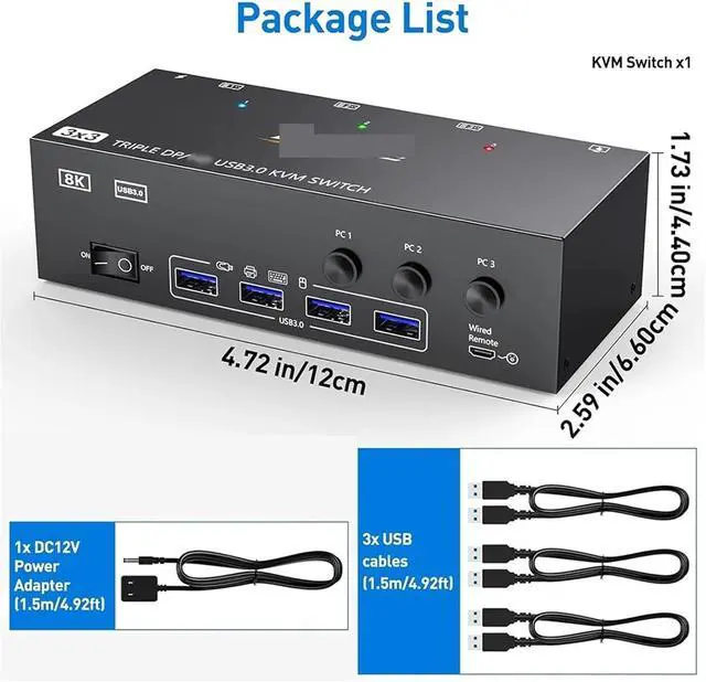 Package list: 1* KVM Switcher 3* USB cable 1* User manual Application : PC,Storage Device,Display Output : HDMI Input : USB,HDMI Type : KVM Switches Code : C13482