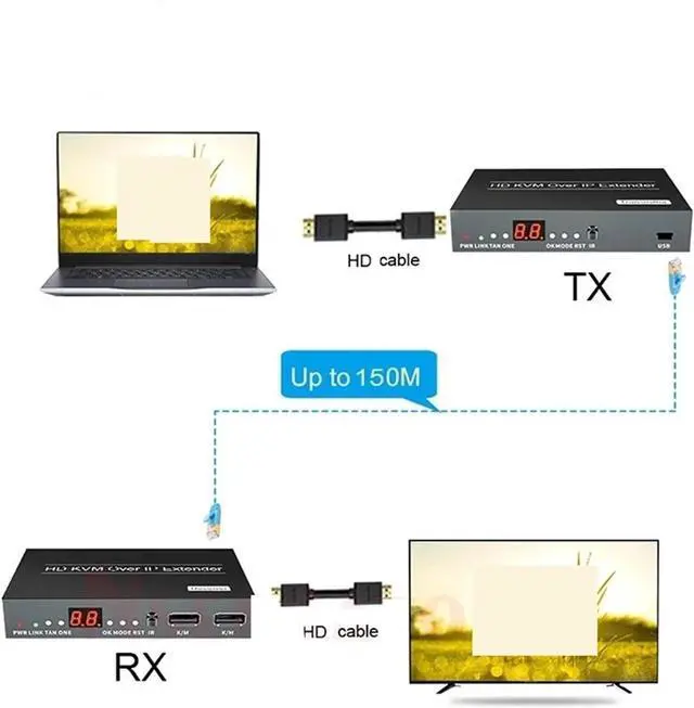 Ennovor 150M HDMI KVM Extender Over IP POE USB Extender via cat6 Rj45 Ethernet Network USB Extender for Mouse Keyboard Local Loop Out(Only Transmitter,EU Plug)
