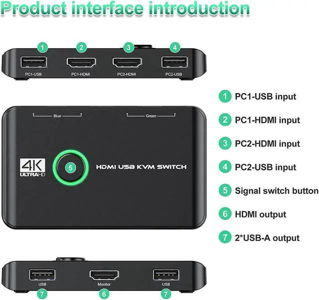 Ultra HD 4K@60Hz Visual EnjoymentThis HDMI USB KVM switch supporting resolution 4K@60Hz, make image display more exquisite and realistic, color is more bright and moving, really give a feast for your eyes.