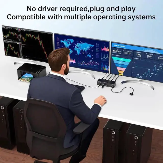 The resolution and fresh rate of triple monitor KVM switch supports up to 8K@60Hz/4K@144Hz.