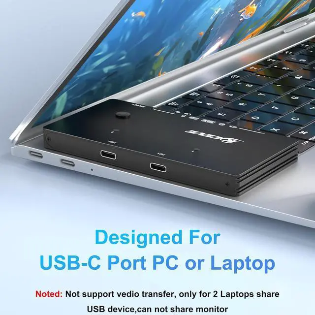 1. This USB C switch allows 2 USB-C computers to share 4 USB device, such as printer, scanner, mouse, keyboard, card reader, flash drive and other USB deivce.
